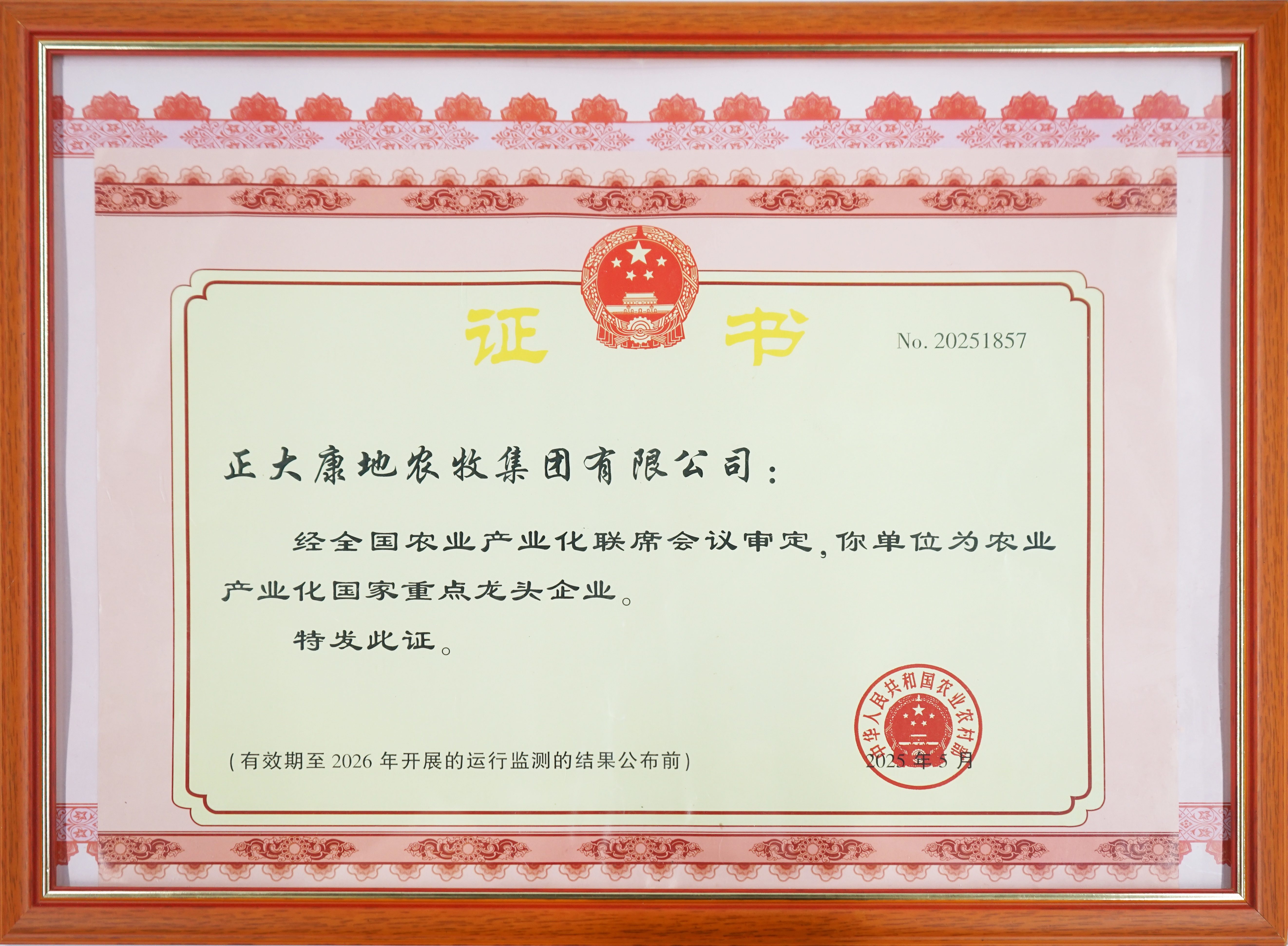 正大康地正式獲批農業產業化國家重點龍頭企業
